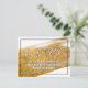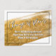 Det här fet, utmärkande kortet har ett faux guld-borstpenseldrag som är täckt med ett smalt svart gräns. Inuti har jag använt en modern handskrift för att skapa avslappnad som lyder "Förändring av planer". (Jag har använt både vitt och svart lagrar för att skapa lite skugga. Du är välkommen att ta bort någon av dem om du vill se annorlunda ut.) Nedre, det finns ett glatt meddelande som du kan redigera och som förklarar dina nyheter: "Vi är fortfarande Gifta sig! Höger nu är vi inte säkra på när det kommer att hända." Denna text har också lagts till i både svartvit lagrar. På baksidan finns mallplatshållare för information. Använda dessa fält att lägga till dina personuppgifter och ändra mitt förslag till formulering till kostym för dina behov och din situation.