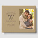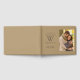 Elegant guld-gästbokens personlig med ett foto av speciell förlovning, namn, monogram, bröllop datum och plats på framsidan. Lägg till datum för namn och bröllop i ryggraden.