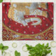 Guld- förskönad indisk elefant som är röd och kökshandduk