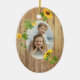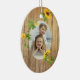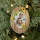 Här är en solig och skarp fotomallsdekoration som är glad men som överger den traditionella glitz, rött och grönten av de flesta prydnadsämnen. Ett varmt guld-faux-trä ram, som är märkt med ljusa solblommor och grönt löv, omger ditt foto. Baksidan av prydnadsämnet har samma trä ram och solblommor, med ett tomt insida för anpassningsbarna på mörk grönt. Underbaren som familjegåva, särskilt till mor- och farföräldrar och andra familjemedlemmar, och kan enkelt visas upp hela året. Byt hälsning på baksidan så att det passar tillfälle!