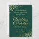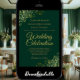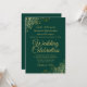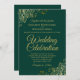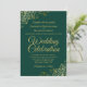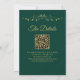 Den vackra bröllopsinbjudan är snyggt, enkel och elegant. Den har skriptbokstäver i guld på en bakgrundsbild av en grönt med blommigt faux-folie i varje hörn. Den understrukna utformningen kompenseras av konstverkets normala kylfrys och virvlar. På baksidan finns anpassadet QR-kod och detaljinformation så att du kan skicka gästerna till en webbplats för information och OSA.