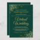 Bara för att du har tvingats flytta bröllop till en virtuell ceremoni, kan du inte skicka vackra inbjudningar till elaket. Den här eleganten inbjudan har finare guld-skriptbokstäver på en bakgrundsbild av en nödställd grönt med lacy blommigt filigree eller curls och swirls i hörnen. Perfekt till inbjudan dina vänner och din familj till på din speciella dag, även om de inte kan vara där personligen.