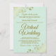 Bara för att du har tvingats flytta bröllop till en virtuell ceremoni, kan du inte skicka vackra inbjudningar till elaket. Den här eleganten inbjudan har finare guld-skriptbokstäver på en blek färgad för nymint grönt med bakgrunden för lacy blommigt filigree eller curls och snurrar i hörnen. Perfekt till inbjudan dina vänner och din familj till på din speciella dag, även om de inte kan vara där personligen.