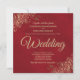 Den här inbjudan är enkel, elegant, chic och vacker. Den har fräckt guld faux foil snöre eller filigree i hörnen, med guld-skript med text på en lush marmorerad röd bakgrund. Den kvadratiska formen gör den unik, och den formella formuleringen gör det lämpligt för fancisterna vid ceremonierna.