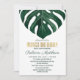 Eleganten som är modern och löv för monstera för ost för enkel grön strand för vattenfärg tropisk det schweiziska på vitbakgrund med fauxen utskrivavet guld omkullkastar inbjudningskort för möhippan för för typografisommarskumpa och frunch. Denna klassiker och sofistikerade design är perfekta för några stilfull och moderiktig händelse, inklusive bröllop och dagliga tillfällen. Personifiera med ditt egna meddelande på bekläda såväl som en skräddarsy monogram som är initial på baksidaen. All fototryckdesign.