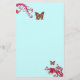 GULD FYNDIG Fjäril och röda bär Tealblå blomster Brevpapper
