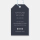 Förse ditt smyckesdesignarbete med de här eleganterna med märkre. Konstruktionen har en geometrisk gemstensillustration av konsthugg i stil i faux-guld-folie, med ett enda inledande monogram inuti. Anpassa med två linjer anpassningsbar text nedanför i vit text på en rik marin blå bakgrund. Lägg till din affärskontaktinformation på baksidan.