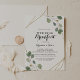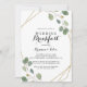 Den geometriska kalligrafin-inbjudan till bröllop-frukost i guld är perfekt för en strålningsdag efter att vänner och familj i bröllop kom samman frukost. Utformningen har handdragna botaniska gröntar eukalyptus grenar och löv som adorerar elegant ram.