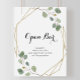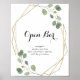 Det här guld-geometriska kalligrafitecknet bröllop som är öppet pub är perfekt för ett rustiskt bröllop. Konstruktionen har handdragna botaniska gröntar eukalyptus grenar och löv som adorerar elegantens geometriska ram.