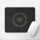 Den här eleganten har en inledande guld-monogram i ett öppet serif-teckensnitt som ramats in av tre oregelbundna guld-vajrar på en svart bakgrund.