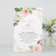 Komplettera ditt klassiska bröllop med det här guld-geometriska bröllopsprogrammet av blommor. Utformningen har rosa, vita vattenfärgblommor med grönt löv och lägger till ett guld geometriskt ram.