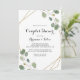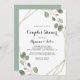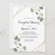 Denna guld-geometriska moderna kalligrafi-duschinbjudan till par är perfekt för en strålande möhippa. Utformningen har handdragna botaniska gröntar eukalyptus grenar och löv som adorerar elegant ram.