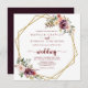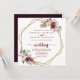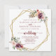 Den här guld-geometriska blommigtens inbjudan till bröllopet på framsidan och baksidan är perfekt för ett enkelt bröllop. Utformningen har blommor, rosa och vattenfärgblommor med grönt lövs som adorerar ett guld-geometriskt ram. Spara papper genom att på baksidan av inbjudan ange mer information i stället för på ett separat visitkort.