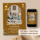 Dela högtidens välsignelser med detta eleganta Eid Mubarak-fotokort. Designen har ett sofistikerat islamiskt geometriskt mönster i en rik guldton, infattat i en klassisk valv som framhäver ditt familjefoto.