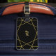 Denna stilfulla bagagemärkre har en svart bakgrund och en guld- geometrisk design för faux. Din monogram går på bekläda och din information om kontakt på baksidaen.