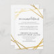 Guld falsk folie överlappande skiktade geometriska fyrkanter kant hotell boende inbjudan information insats kort med ditt hotell rum block namn, kod, hotell adress, webbplats, och bokningsinformation detaljer i en minimal och modern text design för en bröllopsmottagning, mitzvah, eller fest.