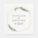 Modern utformning med ett guld-geometriskt ram med vackert vattenfärgat lövblad. Den här eleganten är ett underbart tillägg till ett fall eller vår bröllop och innehåller alla produkter som du behöver för din speciella dag - spara datumen, inbjudningar, bord-planerare med mera.