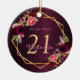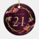 Ett prydnadsföremål för en girig och glamorös 21:a födelsedag (eller någon ålder). En färgad för burgundy-övertoning för mörk. Ett faux guld-geometriskt ram och vattenfärgade blommor, blommigtar i burgundi, rosa och ro guld. Anpassa och lägg till ett datum, namn och 21 år. Texten: namn är skrivet i rosa med ett modernt handskript i stil. Perfekt som party dekoration, tjänst, keepé eller som gåva.