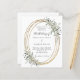 En vit bakgrund. En ovalfaux guld tittar ram med en grönt gienery. Anpassa och lägg till namnen, information. Svart text. 1 lakan = 1 inbjudan tryckt kant till kant.
