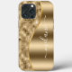 Gör ett fet påstående med den här guld glam-designtelefonväskan. Anpassa bara telefonfodralet med det namn du valt.