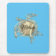 På en baby blue grund är det en elegant guld-cirkel där spiral formar en havssköldpadda med en glitter guld-sfär med guld blomning, där man kan anpassa den så att den blir unik för er. Glam vibes.