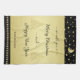 Guld glänsande julstjärnor, tassar på guld och sva kökshandduk