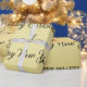 Guld glänsande julstjärnor, tassar på guld och sva presentpapper