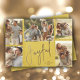 Helgdagskorten för multifotojul har namn och ord Glatt i chic guld på en gult guld-bakgrund. Ladda bara upp dina favoritfoton från familjen och lägg till din familjeanpassning på baksidan. Välj Projektionsyta för tyngsta pappra och HD-kvalitet för bästa fotokvalitet.