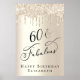 Elegant personlig välkomsthälsning för 60-årsfirande, nedladdningsbar posterskylt med guldglitter som droppas från toppen mot en guldbakgrund och "60 & Fantastisk" i ett chic-skriftsnitt. Anpassa med hennes namn.