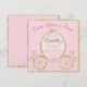 Den här flicka-babyduschinbjudan i anpassningsbar innehåller ett spännande sagematod på rosa bakgrund. En bild av en guld glitter prinsessa-vagn med en tiara överst placeras på framsidan, med händelseinformationen tryckt inuti. En matchande guld glitter ram gräns som inbjudan. Den klassiska felstavningsfrasen "Gång on a time" skrivs ut ovanför lasten i ett elegant-rosa-skriptteckensnitt.