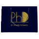 En stor PhD studenten-presentväska med en (icke-folie) guld glitter och blå design. Anpassa helt enkelt med student namn, lägg till den här presentpåsen i din vagn och ge i all hast om deras stora prestation.