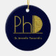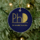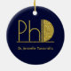 En PhD-dekoration i studenten med en (icke-folie) guld glitter och blå design. Anpassa helt enkelt till namn i student, lägg till den här prydnaden i din vagn och ge detta för att visa att de har uppnått mycket. Blått PhD-Studenten keramiskt prydnadsmönster från guld under semesterdagen | ©Melissa Patton - Designer