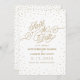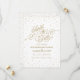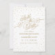 Små, glittrande guld-stjärnor gnistra i konfektmoln runt kant om detta vackra vita kort och guld Spara datumkortet, med ett guld-glitter-effektskript med texten "Spara datum". Finare, chic och förtjusning på gång. Originalteckningar av Colleen Michele. Observera att det inte finns någon verklig effekt på stjärnorna och manuset i guld eller guld, och att inget glitter, guld löv eller metalliskt bläck kommer att användas i denna inbjudan.