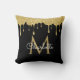 Chic svart och guld glitter droppar monogram dekorativ kudde. Designad av Thisisnotme©