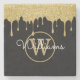 Chic guld glitter droppar, manuset namn och guld monogram på en svart bakgrund underlägg. Du kan anpassa namn, monogrammet och anpassa teckensnittet och färg för att skapa din egen unika design. Designad av Thisisnotme©