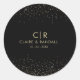 Det klassiska runda klistermärket guld elegant bröllop är perfekt för ett modernt bröllopsmottagande. Utformningen har en vacker guld glitter inslag i svart bakgrund för att försköna evenemanget.