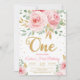 Guld glitter - en rosa blommigt första födelsedagsinbjudan för flicka, personlig, Ro ©