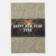 Den moderna kökshandduken Guld Glitter Fireworks Gott nytt år 2023. Ytlig utformning med faux guld glitter och svart bakgrund. Gott nytt år är i ett trendig och ett modernt, vitt skript på ett fyrverkerifoto. Lägg till årsnumret.