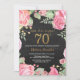 70th födelsedaginbjudan för blom- överrrakning för kvinnor. Botanisk blom- blomma för vattenfärg. Guld- glitter. Rosa pionblommigtblommor. Vuxen födelsedag. Svart tavlabakgrund. Behaga klickar "skräddarsy den" knäppas och använder vårt designverktyg för att ändra denna mall för mer ytterligare customization.