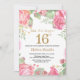 16th födelsedaginbjudan för blom- överrrakning för kvinnor. Botanisk blom- blomma för vattenfärg. Guld- glitter. Rosa pionblommigtblommor. Födelsedag för ungeflickadam. Behaga klickar "skräddarsy den" knäppas och använder vårt designverktyg för att ändra denna mall för mer ytterligare customization.