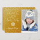 ”Fred, glädje & kärlek.” En rolig, lekfull illustration av en vit snöflinga och modern typografi på en glittrande, falsk guldglitterbakgrund hjälper dig att ta emot högtidsstämningen, tillsammans med det anpassade foto du väljer. Vita konfettipunkter ramar in kortet. Känn värmen och glädjen under högtiden när du skickar detta fantastiska, grafiska, personliga platta fotograttulationskort. Matchande kuvert, klistermärken, shoppingväskor, presentpapper, serveringsbrickor, heminredning och mycket mer finns också tillgängligt. Skicka detta till någon speciell!