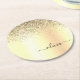 Guld Glitter Girly Luxury Modern Monogram Namn Underlägg Papper Rund