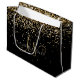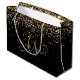 Glam Guld Glitter Elegant Monogram Gift Bag. Anpassa enkelt den här presentsäcksdesignen för chic av trendig med elegant guld mousserande glitter mot svart bakgrund. Designen har ditt handskrivna skriptmonogram med söt-snurrar och ditt namn.