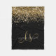 Eleganten Monogram Fleece Blanket i Luxury Guld Glitter. Anpassa enkelt trendigets chic till filtret som ger elegant guld mousserande glitter mot svart bakgrund. Designen har ditt handskrivna skriptmonogram med söt-snurrar och ditt namn.