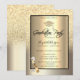 Guld glitter studentmössa, champagneglas på champagnebakgrunden. Den här inbjudan är lätt att anpassa för evenemanget genom att helt enkelt lägga till information.
