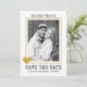 Guld glitter hjärtar skrivmaskinen bröllop fotot Spara datum meddelande.