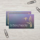 Det här affärskortet har en enkel och elegant hummingbird-design. Bakgrunden är glansig tittar, mörk holografiskt mönster, med regnbågsbesläktat färg. En hummerfågel bildas på högerna med en glatt guld glitter-design. Företaget eller företaget namn trycks på framsidan med kontaktinformationen tryckt på baksidan.