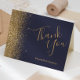 Den här eleganten är det moderna bröllop-tacket som du har ett gräns av guld faux glitter mot en mörk blått bakgrund. Anpassadet kombinerar ord "Tack" i handskriftsskriptet guld-färgad och namn i briden och trimmen med kursivt teckensnitt.