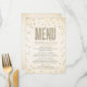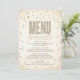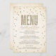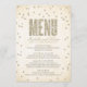 Den moderna och snyggt inbjudningskort för möhippan-designen av The Spoted Olive™ ger en bild av guld glitter som ser ut att konfettera punkter på en mjuk, västerlös bakgrund med ord "MENU" fylld med en bild av guld glitter. VÄNLIGEN NOTERA: DENNA UTFORMNING HAR EN BILD AV KONFETTIEN I GLITTER. DET FINNS INGEN GLITTER, KONFETTI ELLER EMBELLISHMENT. DET HÄR ÄR EN FLAT SKRIVEN FORMGIVNING. COPYRIGHT ©2014 The Spoted Olive™. Alla rättigheter förbehållna.