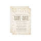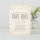 Den här moderna och snyggt bröllop spara datum-annonsen från The Spoted Olive™ ger en bild av guld glitter som ser ut som konfetti-punkter på en mjuk västerlös bakgrund med orden "SPARA DATE" fylld med en bild av guld glitter. OBSERVERA: DENNA UTFORMNING ÄR EN BILD AV KONFETTIEN I GLITTER. DET FINNS INGEN GLITTER, KONFETTI ELLER EMBELLISHMENT. DET HÄR ÄR EN FLAT SKRIVEN FORMGIVNING. COPYRIGHT ©2014 The Spoted Olive™. Alla rättigheter förbehållna.